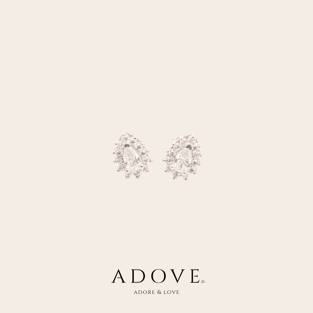 Adelita is a pear shaped zircon rested in a cushion filled tiny zircons, Style Adelita for any occasion to give your earlobes that extra bling.