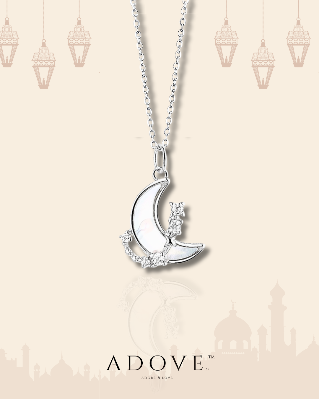 Embrace celestial beauty with this Moonlit Necklace from ADOVE. Adorned with shimmering stones, it exudes elegance and charm. A perfect piece to elevate any outfit!