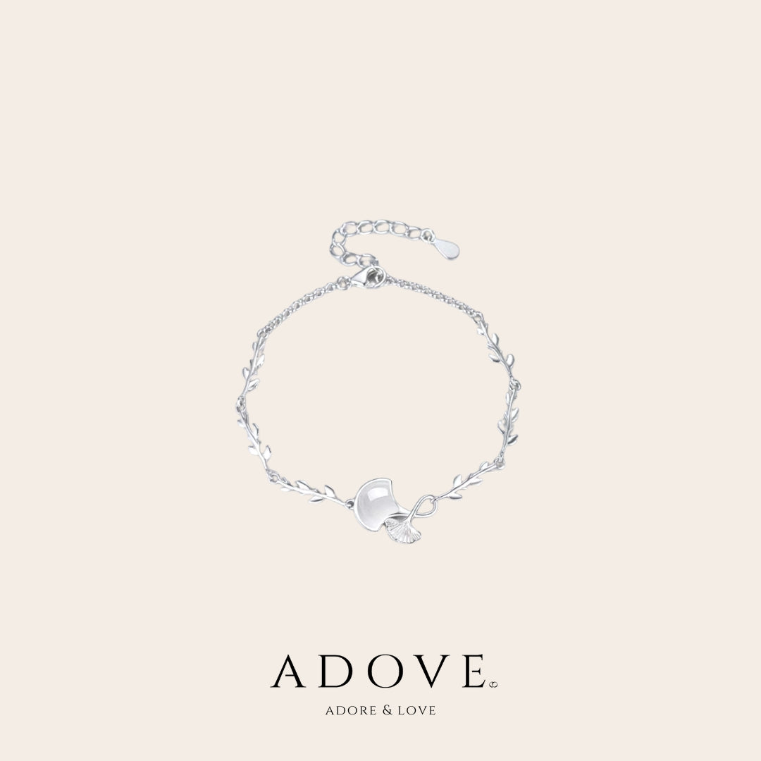 Inspired by the olive plant, the bracelet is made out of intertwined olive leaves and adorned with one single cat eye gem as the olive flower.
