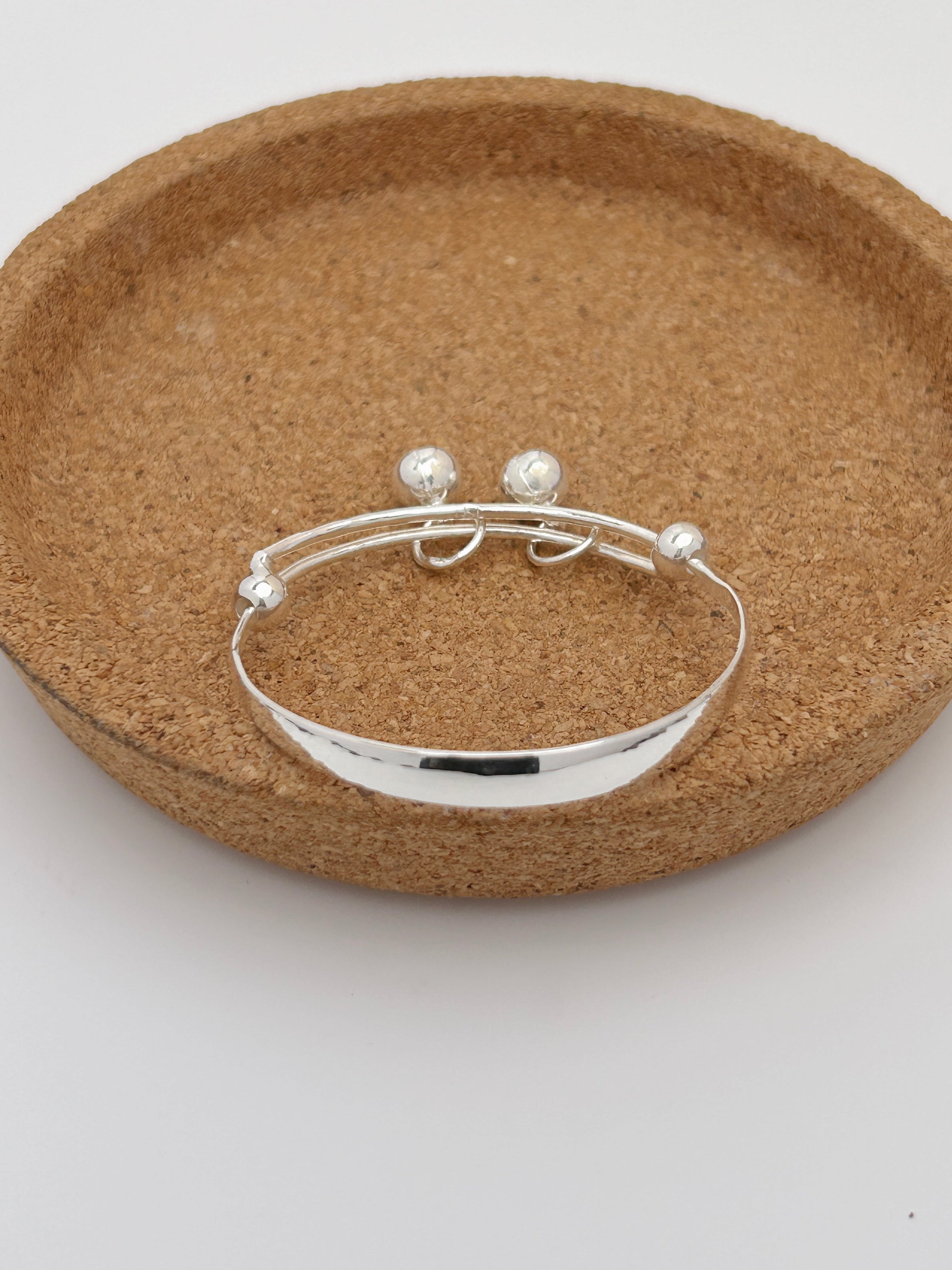 Plain flat kids bangle that is adjustable and engravable. Suitable for babies and young children.