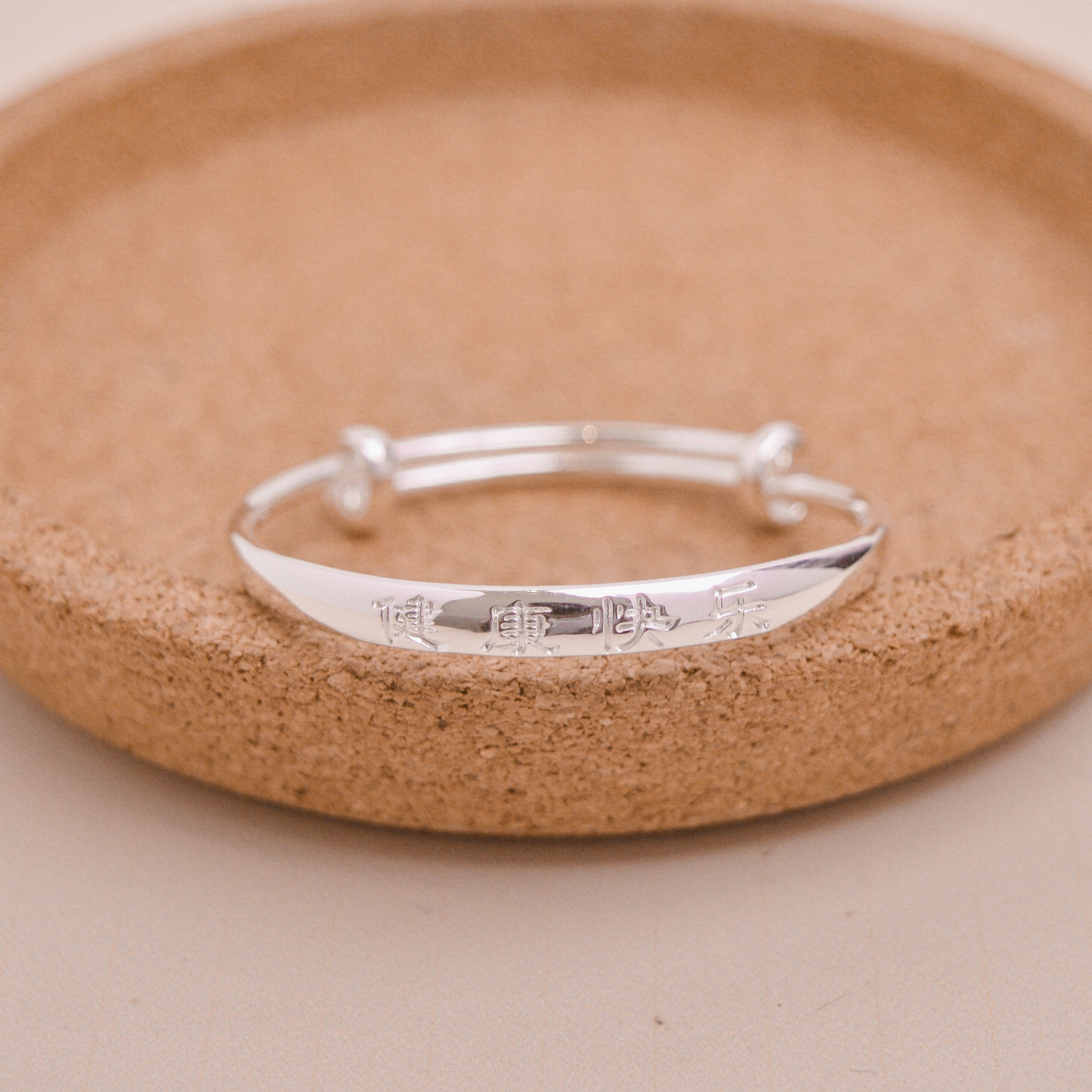 Adjustable bangle engraved with the blessings of Happiness & Health, suitable for babies and young children.